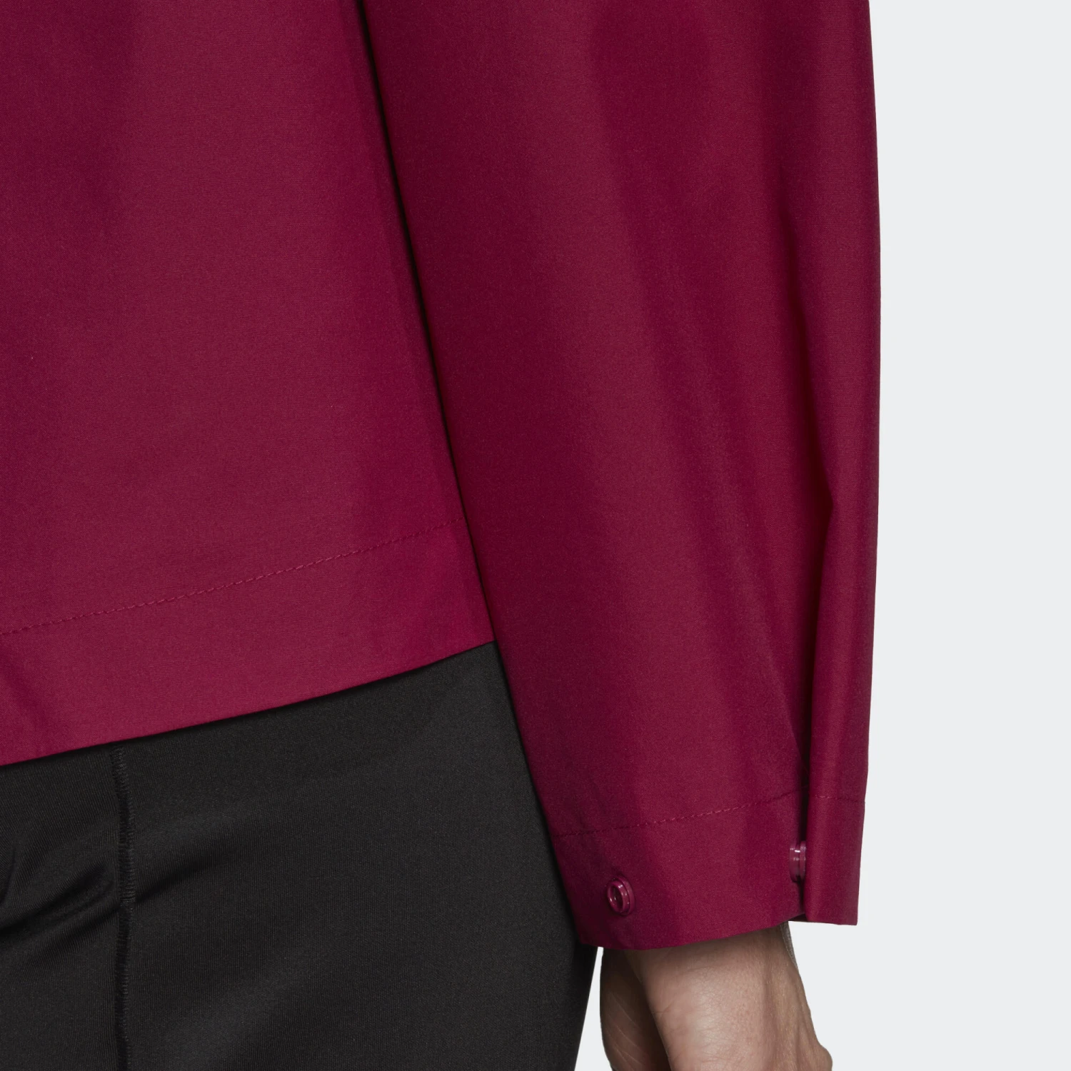 Function and style team up in this versatile adidas jacket. Sealed seams, two-layer construction and RAIN.RDY keep moisture out so you feel dry and comfortable when conditions go south. The stow-away hood wins points for convenience. And whatever the weather, you can snap the cuffs and cinch the waist for a modern, pulled-in look.